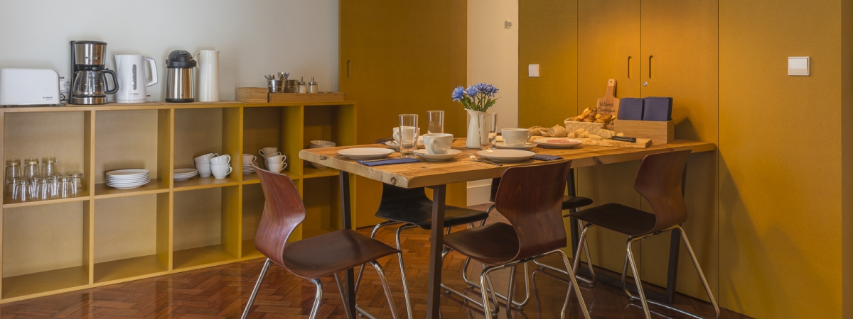São 9 os quartos que temos à disposição, todos muito espaçosos (entre 16 e 20m2) e a maioria com varanda. Dois são suites – com casa de banho própria – e os restantes sete quartos partilham 3 casas de banho (de utilização privada mas não exclusiva). Cada quarto representa um bairro característico de Lisboa e está decorado por obras de arte de artistas locais, alusivas ao respectivo bairro. Dê uma vista de olhos aqui.